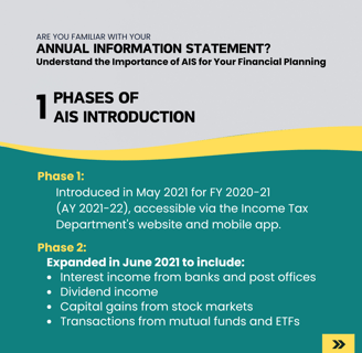 Phase 1: In May 2021, AIS was first introduced for the financial year 2020-21 (Assessment Year 2021-22). It was made available on the Income Tax Department's website and mobile app.