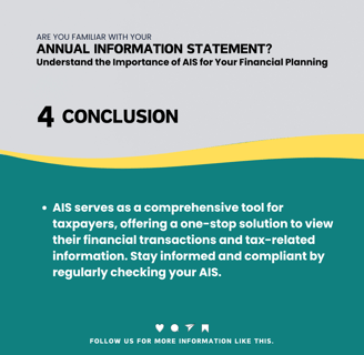 The Annual Information Statement (AIS) introduced by the Income Tax Department of India represents a significant step towards financial transparency and compliance. By providing a comprehensive view of a taxpayer's financial transactions, AIS helps in accurate tax reporting and planning. Ensure you regularly check your AIS to stay informed about your financial activities and tax obligations.